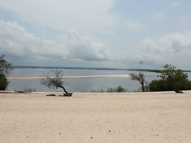praia fica restrita a 20m de largura e, na vazante, atinge até 80m.